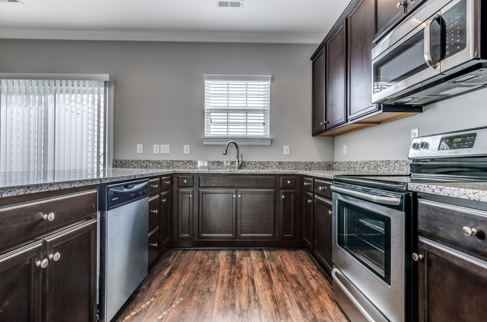 PLEASE CALL OUR LEASING DEPARTMENT AT 704-909-0400 TO SCHEDULE AN ONSITE APPOINTMENT. VIEWING TIMES ARE AVAILABLE MONDAY THROUGH FRIDAY FROM 7:30 AM TO 6 PM AND SATURDAY FROM 7:30 AM TO 4 PM. Preferred end unit townhome with spacious open floorplan, luxury vinyl plank flooring and 9ft ceilings on main level. Kitchen has upgraded faucets, stainless steel appliances and walk-in pantry. Granite counter tops and upgraded cabinetry throughout home. Custom lighting, fixtures, crown molding and faux wood blinds. Spacious primary suite and two additional bedrooms with vaulted ceilings. Ceilings fans in all bedrooms and living room! Washer and dryer included! All electric. Exterior patio with great view and attached storage room. Pictures are of different units in same development with similar features. Close to Charlotte Motor Speedway, Concord Mills and I-85. Conveniently located near restaurants and shopping. Each person 18 years and older must complete a separate application and pay $55 application fee. Any animal must be pre-approved by property owner. Owner will consider indoor animals only. Cats or small dogs / approved breeds 25lbs or less. $300 (one time) pet fee per approved pet. Please contact us with any questions prior to submitting application(s).
